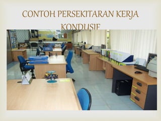 Selain akan memaparkan contoh-contoh yang dimaksud pada bagian ini Glints juga akan membagikan masing-masing cara mengatasi konflik di tempat kerja yang dimaksud. 28 FAEDAH EKSA Mewujudkan persekitaran tempat kerja berkualiti bersih kemas dan rapi Meningkatkan kecekapan keberkesanan pengurusan organisasi Mengenalpasti mengurang menghapuskan pembaziran Meningkatkan imej agensi sektor awam Menjana idea kreatif di kalangan warga agensi. Akan tetapi lebih kepada menunjukkan sikap menghargai pilihan orang lain tanpa mengganggu personalnya.